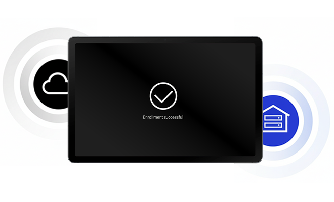 ✓ Knox Mobile Enrollment (KME) Registrierung Die Tablets werden automatisch mit Ihrem Knox Mobile Enrollment verknüpft und sind sofort startklar.